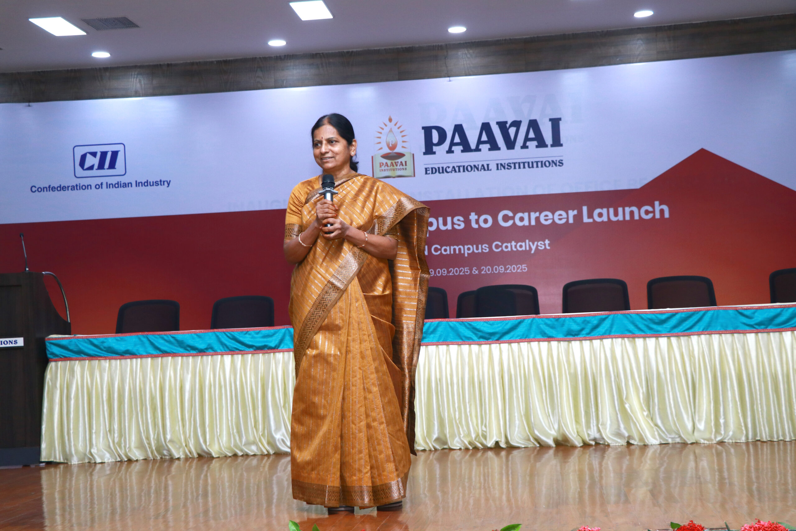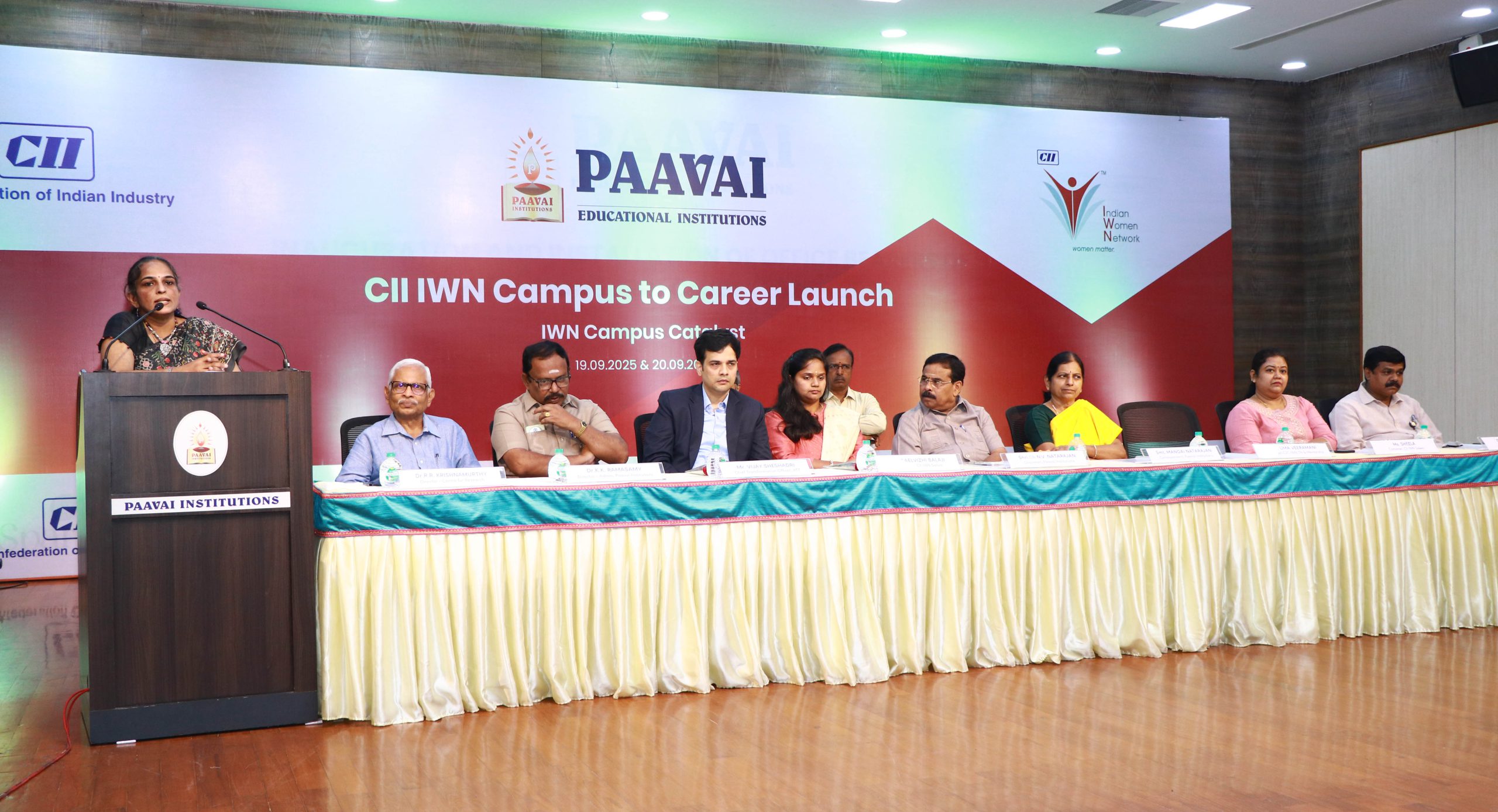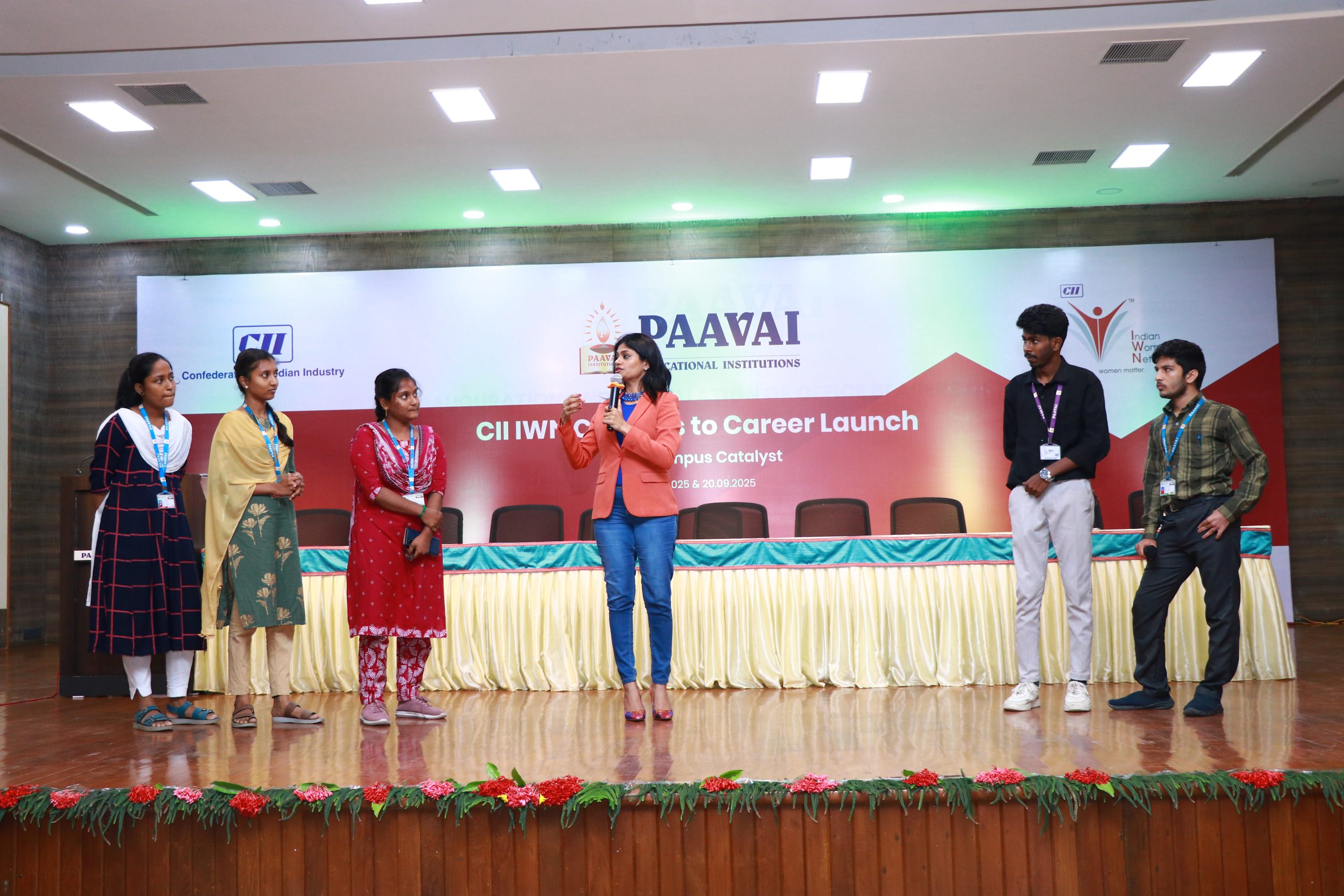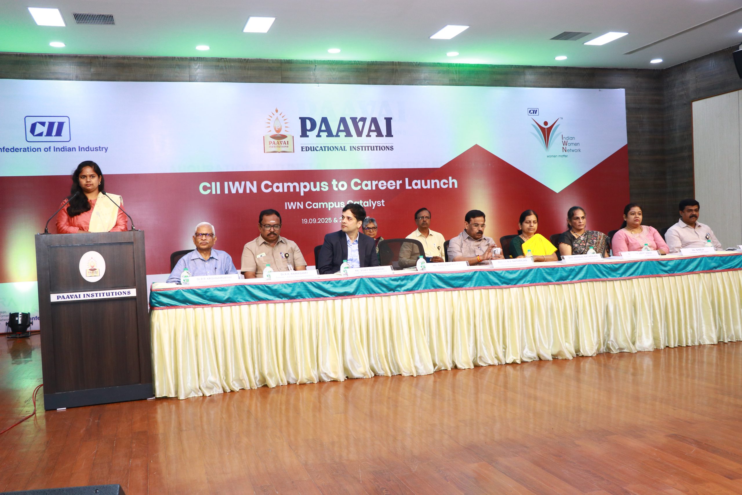 The two-day CII IWN Campus Catalyst program, organized by Paavai Engineering College (Autonomous) on 19th and 20th September 2025, was a highly enriching and engaging event aimed at empowering students through a series of insightful and skill-enhancing sessions. The inaugural session featured prominent speakers including Shri CA N.V. Natarajan, Chairman of Paavai Institutions, who delivered the welcome address and emphasized the importance of bridging the gap between academia and industry through continuous skill development. Ms. Saelvizhi Balaji, Convener of CII-IWN Salem, highlighted the vision and initiatives of IWN in supporting women and youth in professional growth, while Ms. Uma Veeramani shed light on the impact of mentorship and the need for structured guidance in early career stages.