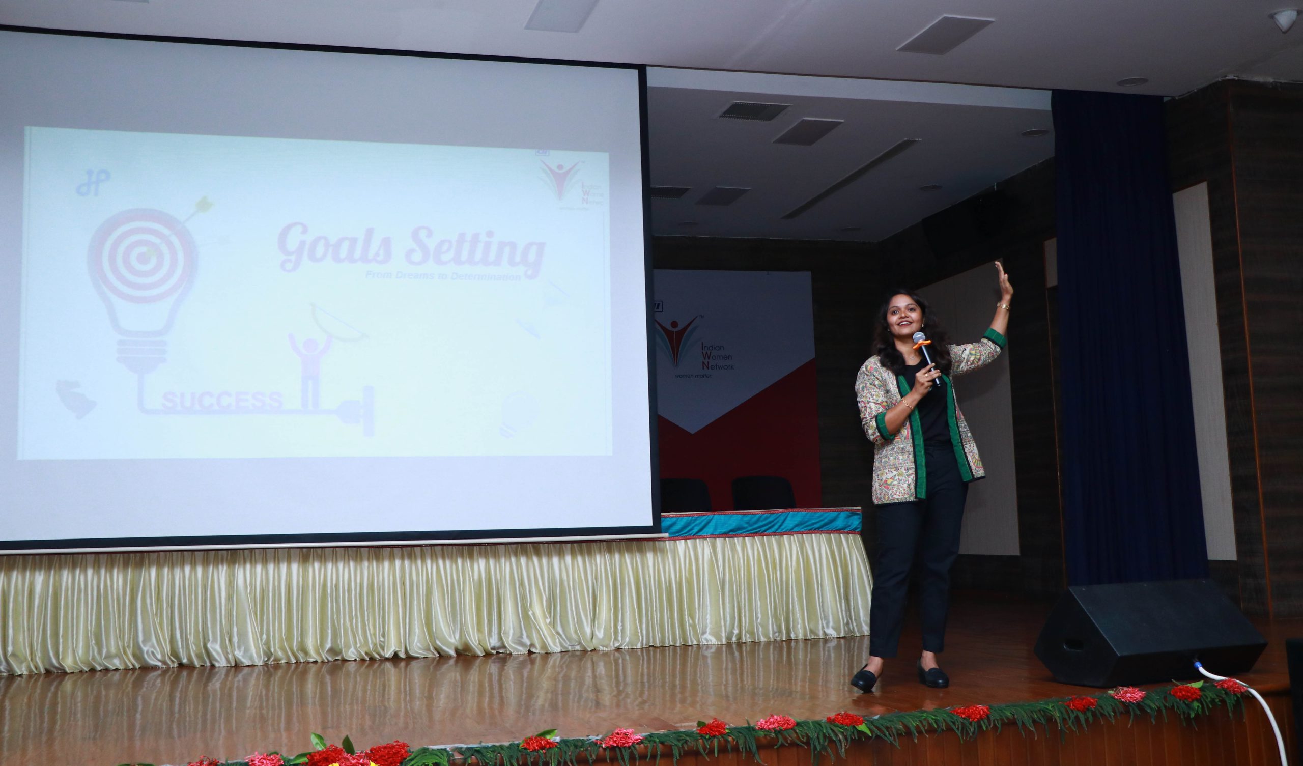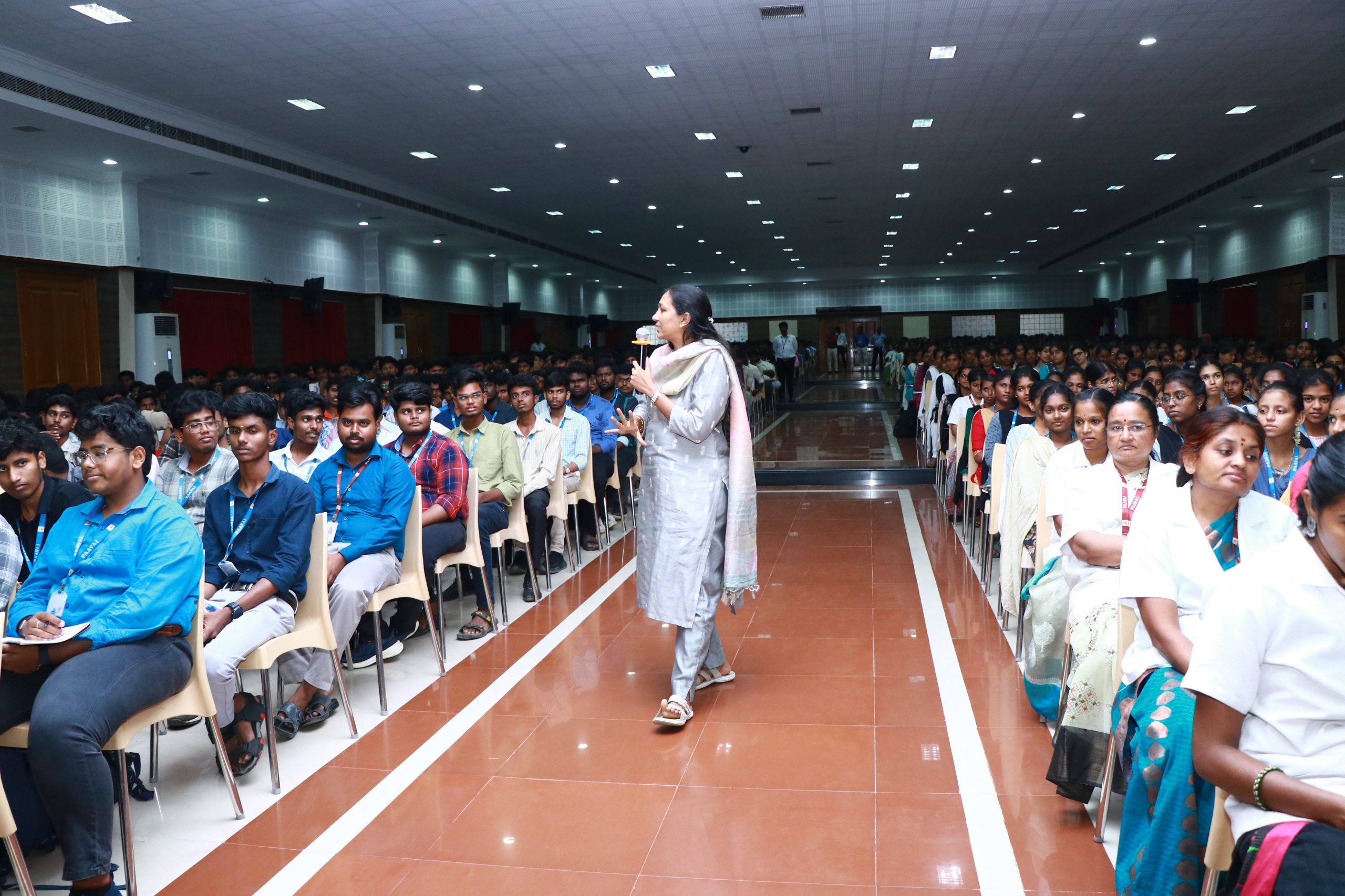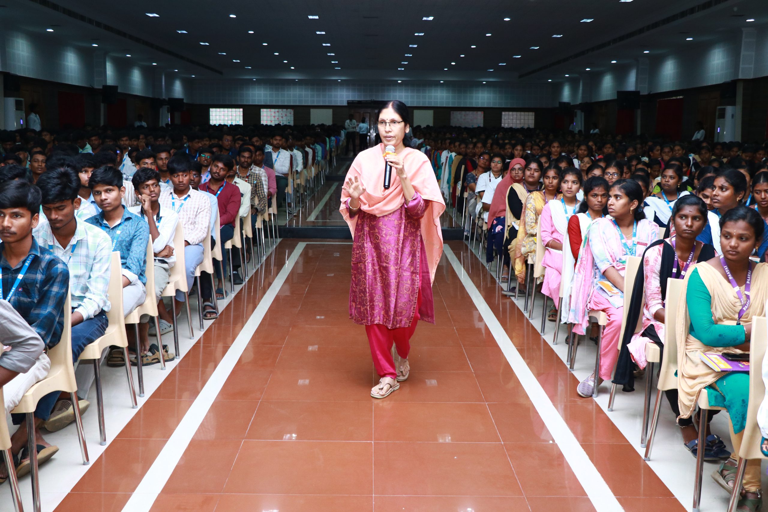 Day two commenced with an engaging session on Goal Setting, led by Ms. Mahalakshmi from Renault Nissan Technology & Business India. She introduced students to the SMART framework (Specific, Measurable, Achievable, Relevant, and Time-bound) and encouraged them to translate their ambitions into actionable plans. She also stressed the importance of adaptability and consistency in the face of evolving career landscapes. Following this, Ms. Rajeswari Natarajan, HR Head at Nippon Paint, conducted a dynamic workshop on Resume Building and Acing Interviews. She provided real-time examples of effective resumes, dos and don’ts for fresh graduates, and simulated interview scenarios to prepare students for real-world hiring processes.