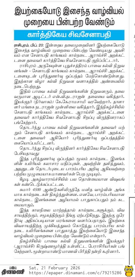 MoU Signed Between Paavai Educational Institutions and Senapathy Kangayam Cattle Research Foundation