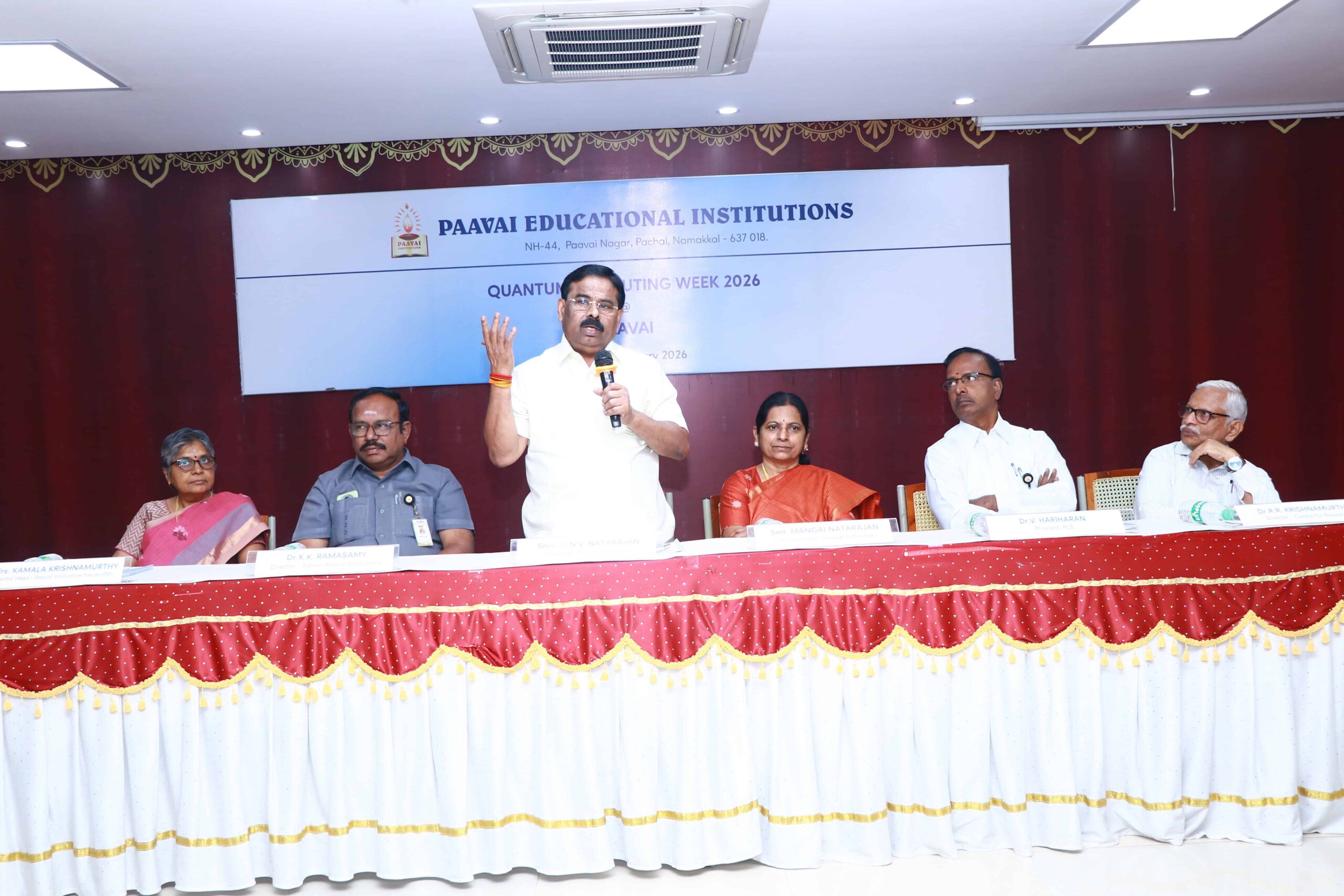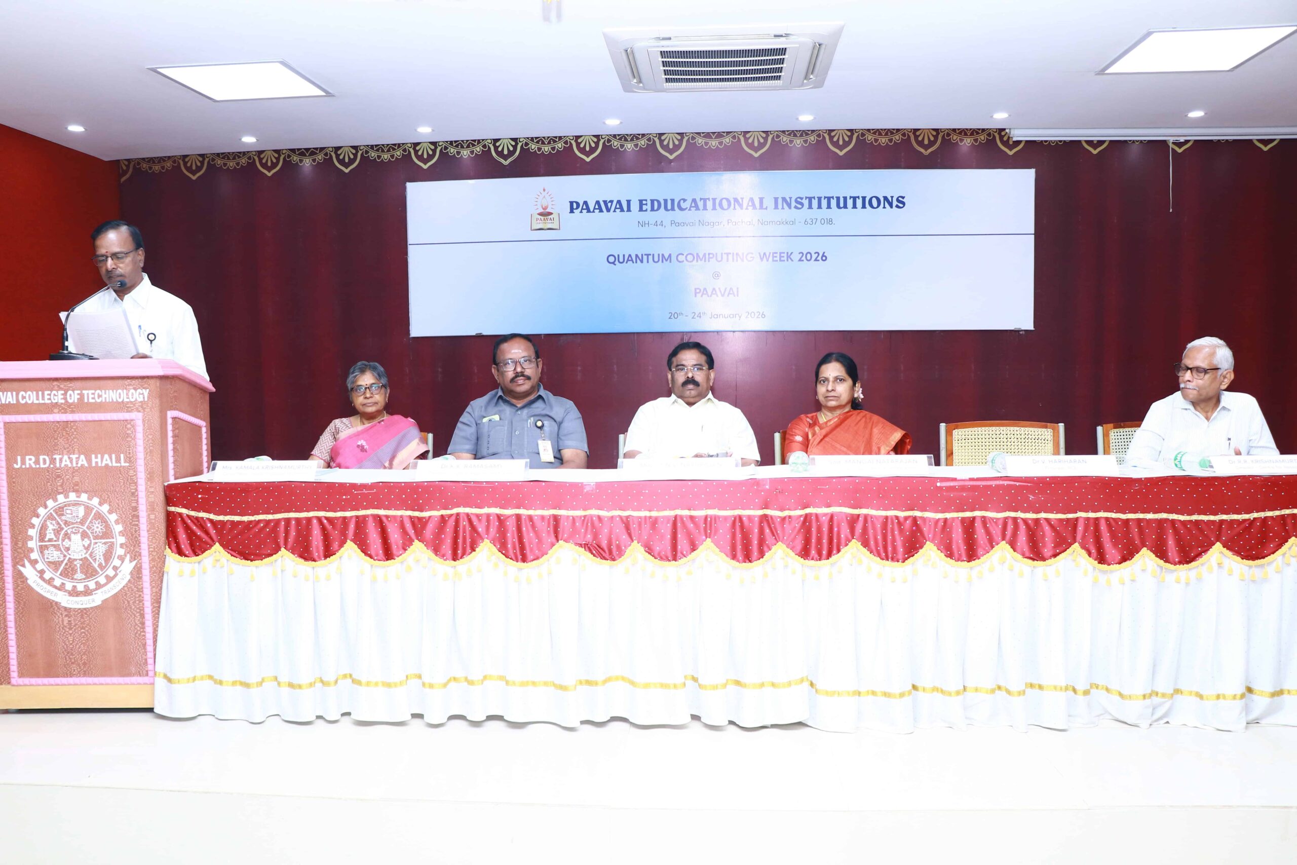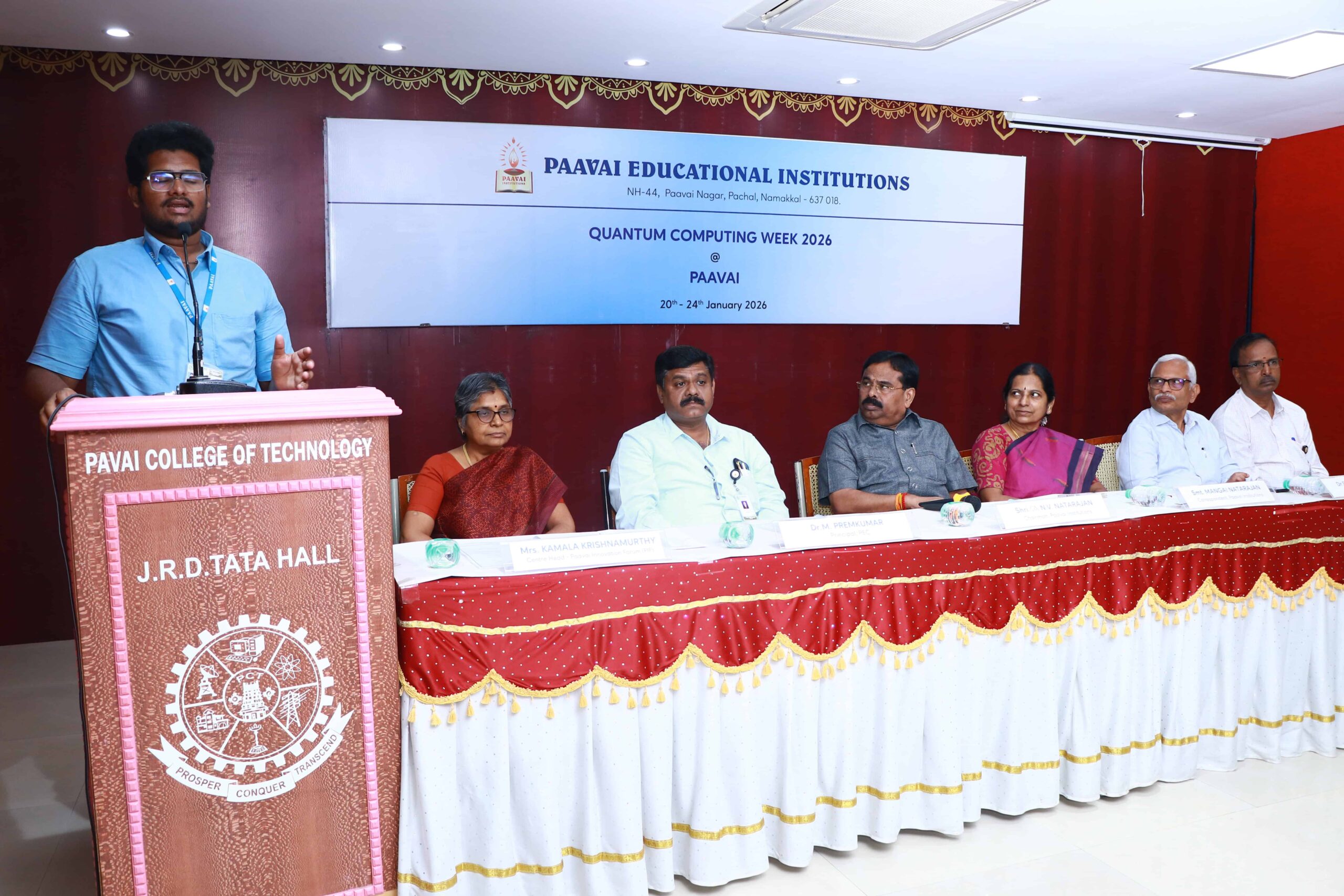 Paavai Institutions organized Quantum Computing Week 2026 from 20th to 24th January 2026 at TATA Hall, with the objective of creating awareness and developing an in-depth understanding of emerging quantum technologies among students and faculty members. The five-day academic programme brought together participants from multiple disciplines to explore recent developments in quantum computing and its growing impact on science, industry, and society.