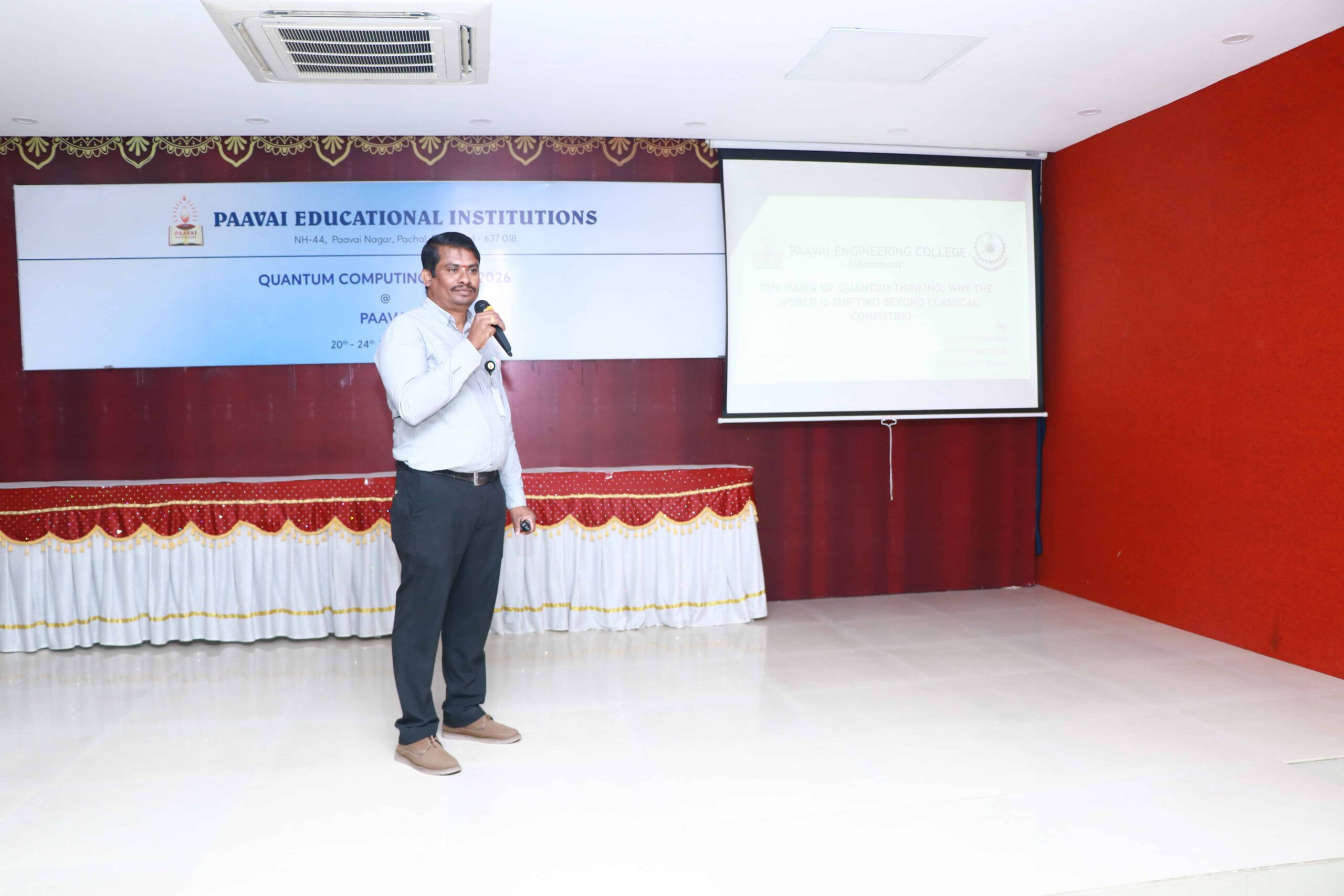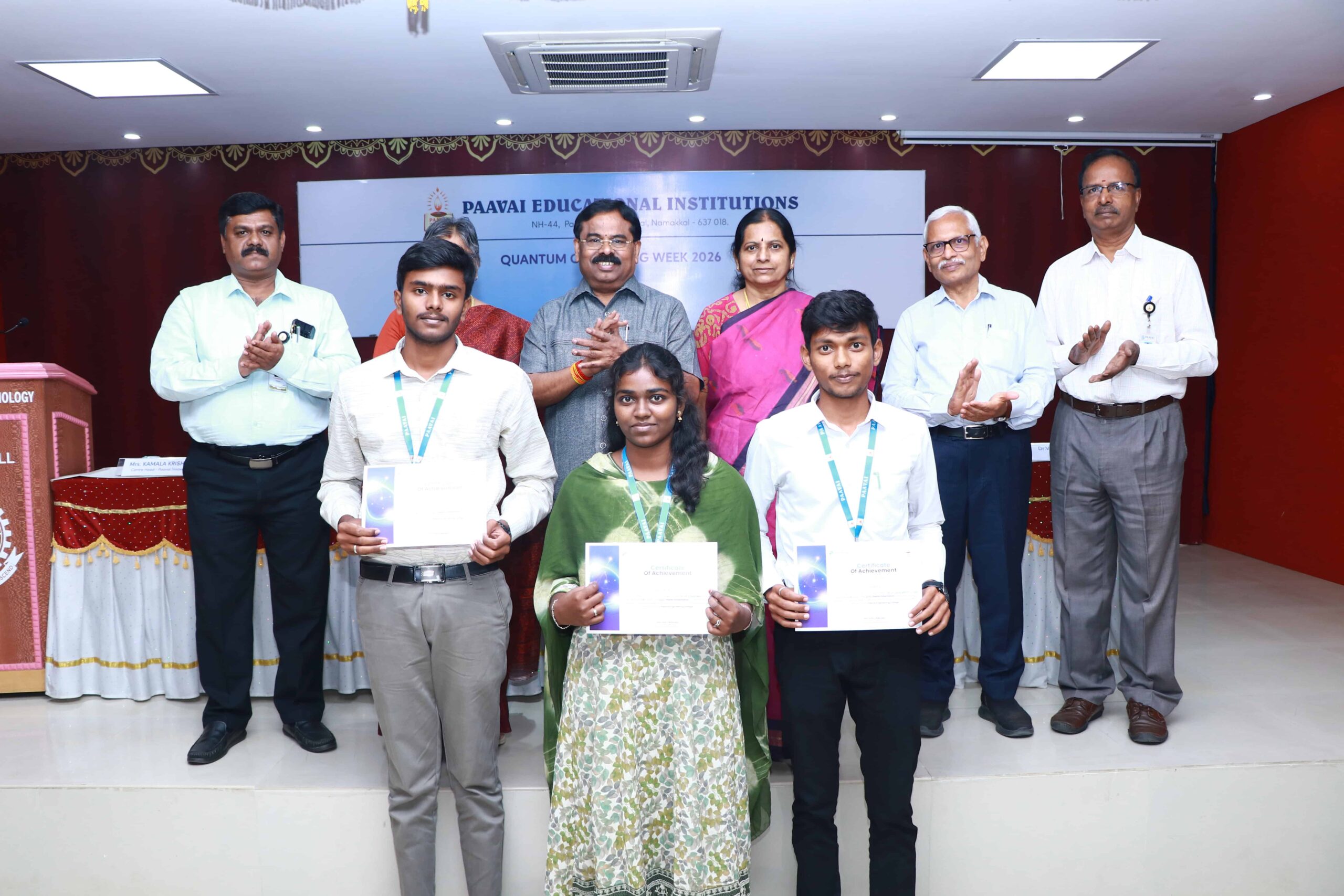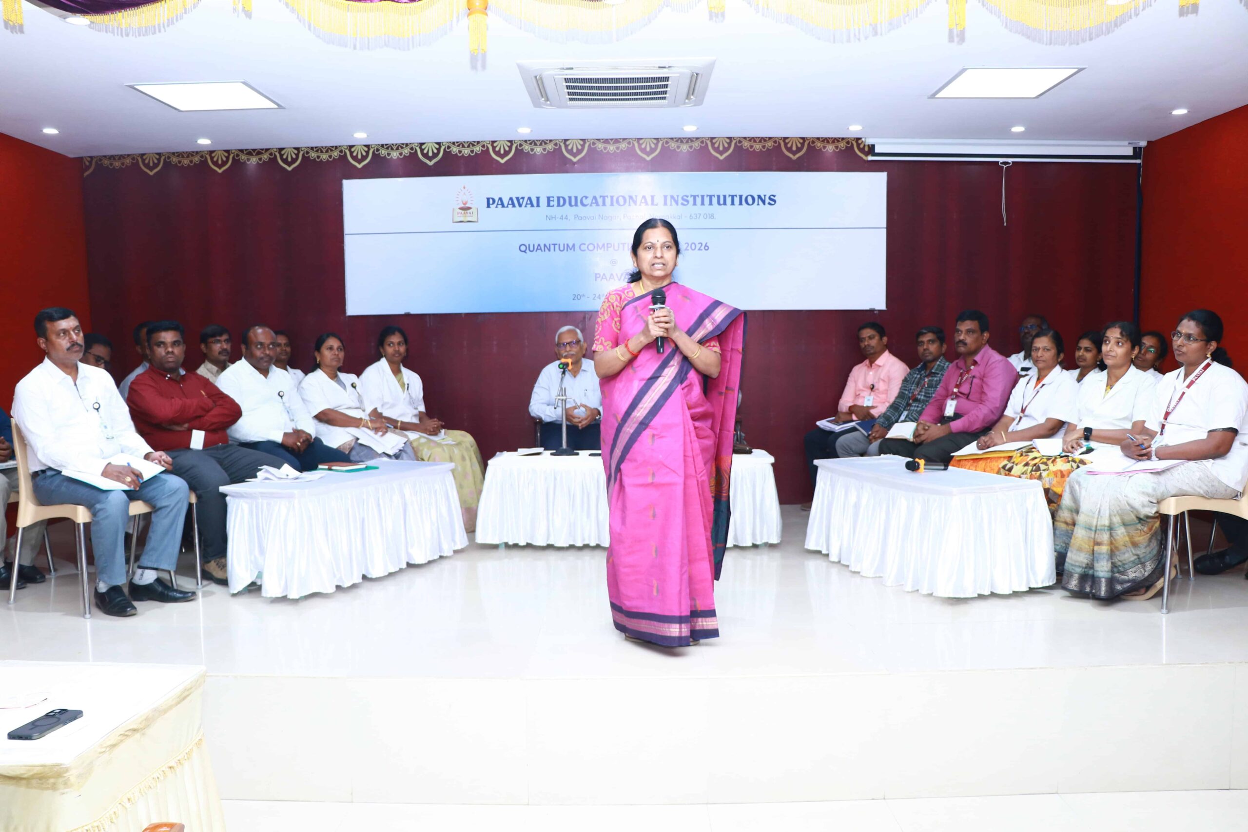 Paavai Institutions organized Quantum Computing Week 2026 from 20th to 24th January 2026 at TATA Hall, with the objective of creating awareness and developing an in-depth understanding of emerging quantum technologies among students and faculty members. The five-day academic programme brought together participants from multiple disciplines to explore recent developments in quantum computing and its growing impact on science, industry, and society.